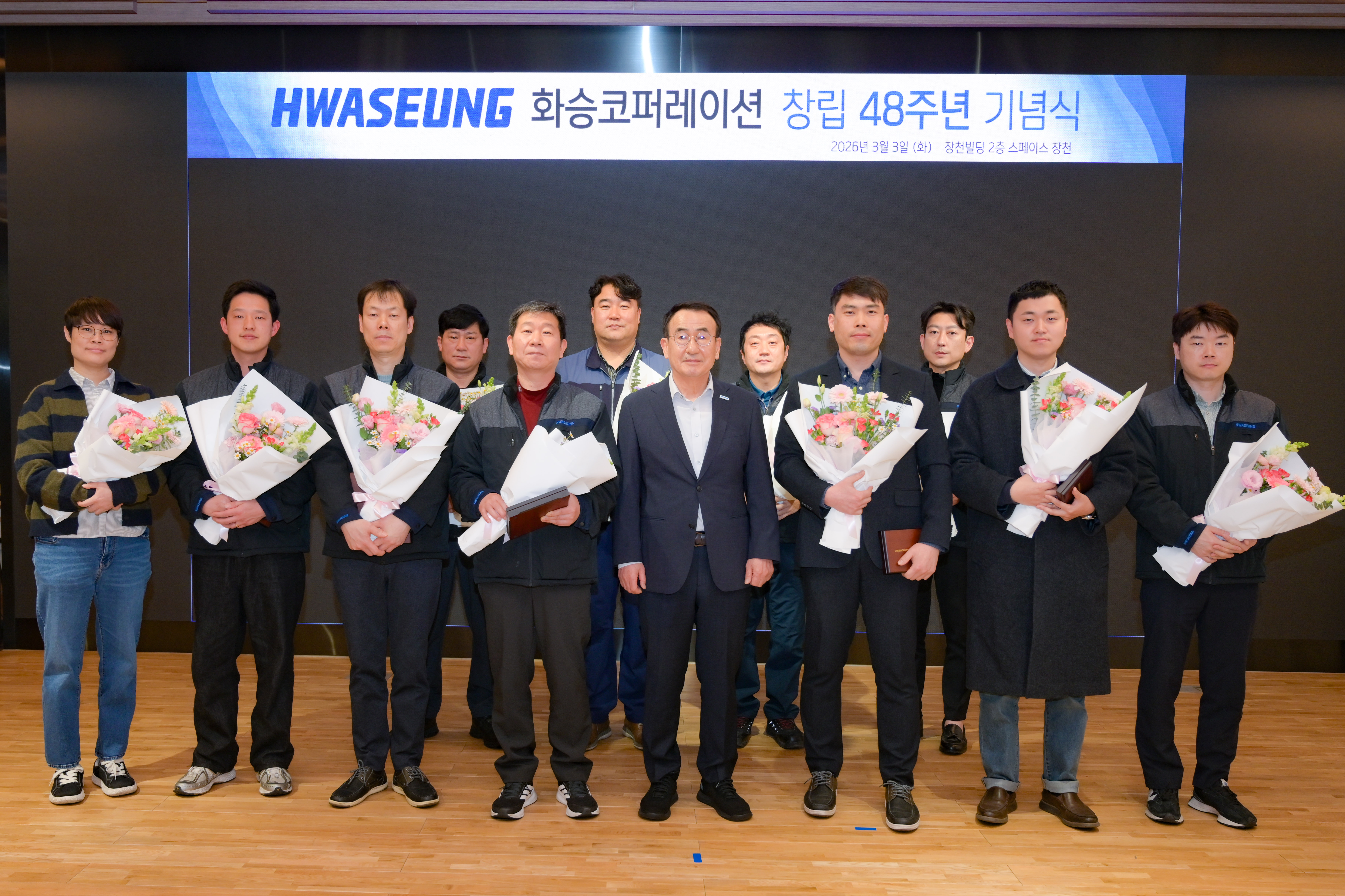 화승코퍼레이션은 2026년 창립 48주년을 맞아 지난 2월 27일(금) 부산 사옥 2층 스페이스장천에서 기념식을 가졌다. 허성룡 대표를 비롯해 임원 및 팀장들이 참석한 가운데 진행됐으며 국내외 다른 임직원들은 온라인으로 참여했다. 30, 25, 20, 15, 10주년에 해당하는 장기근속자들에 대한 시상 및 모범사원 표창이 이뤄졌으며 기념사를 통해 허성룡 대표는 “2026년은 붉은 말의 해로 그 어느 때보다도 강한 실행력이 요구되는 해가 될 것”이라며 “혁신적이고 다이내믹한 화승코퍼레이션을 만드는데 다 함께 노력하자”고 강조했다.