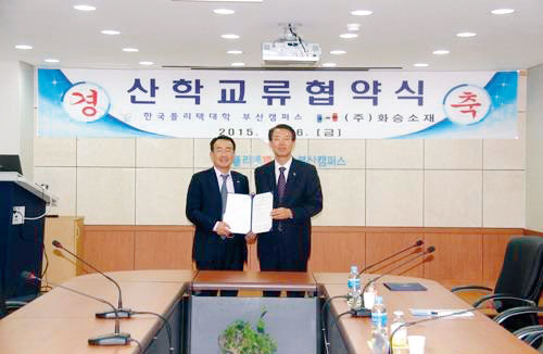 지난 11월 6일 화승소재는 한국폴리텍대학 부산캠퍼스와 일학습병행제 지원 및 유기적 상호협력체제 구축을 위한 산학교류협약식을 체결했다. 21세기의 무한경쟁시대를 능동적으로 대처하고 지방화시대에 부응하기 위하여 일학습병행제 사업진행에 관한 사항 / 공동연구과제의 개발 / 직무능력향상 교육 제공 / 재학생 현장실습에 대한 상호협조 / 졸업생들의 취업연계 협조 등에 있어 상호협력할 것을 약속했다.