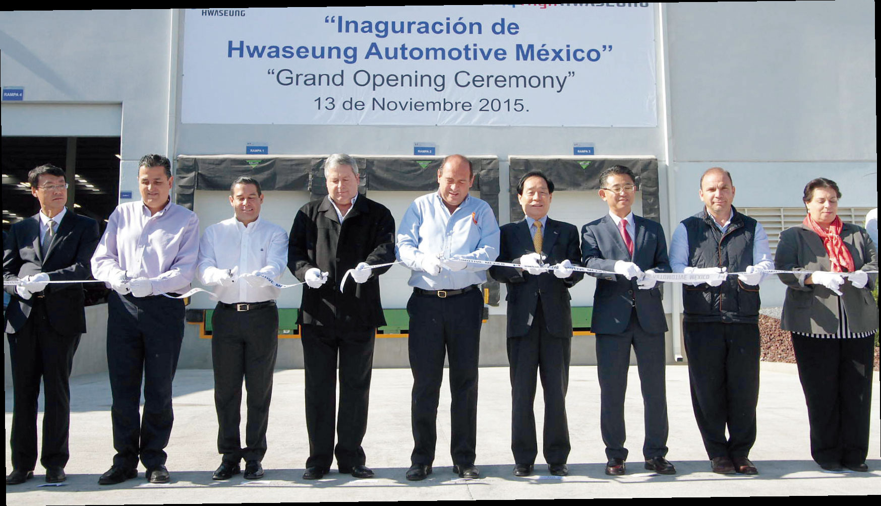 지난 11월 13일 화승멕시코(HSAM) 현장에서 코아우일라 주지사, 라모스 아리즈페 시장, 코아우일라 경제부장관, 빔사 공단사장이 함께한 가운데 멕시코 주정부 초청 행사가 성황리에 끝났다. 올해 설립된 화승멕시코는 미주지역 진출의 시너지를 더할 거점으로 내년 기아자동차를 시작으로 FCA(피아트크라이슬러), GM까지 거래선을 확대해 나갈 계획이다. 2018년 매출 및 생산력 증대에 따른 공장 증설의 계획을 세웠으며 현지 고용 확대에 큰 기여를 할 것으로 기대된다. 현지 지역 경제 발전은 물론 상생을 실천하는 회사로 거듭나겠다는 김형진 미주해외법인 총괄법인장의 사업계획이 발표됐다. 함께한 화승R&A 백대현 대표이사는 “멕시코 진출이 화승이 전 세계에 생산거점을 확보하고, 글로벌 고객사와 함께 성장할 수 있는 기반을 완성했다. 지속적으로 사업영역을 확장해 나갈 화승멕시코 미래에 큰 기대를 모으고 있다”며 감사의 마음을 전했다.