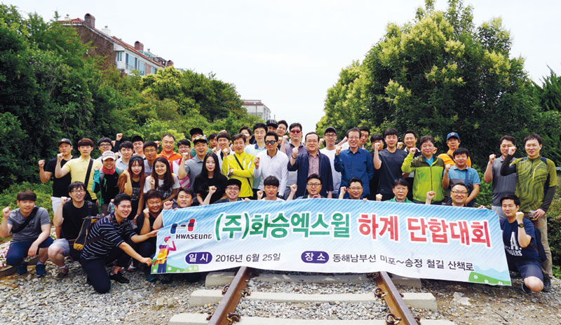지난 6월 25일, 화승엑스윌 임직원들은 부산 해운대에서 하계 단합대회를 가졌다. 이번 단합대회는 화승엑스윌 임직원 54명이 참석한 가운데 동해남부선 해운대 폐선부지(미포-송정)를 함께 트래킹을 즐기며 화합을 다졌다. 변수강 대표이사는 앞으로도 자주 이런 소통의 자리를 자주 가질 수 있도록 노력하겠다고 전했다.