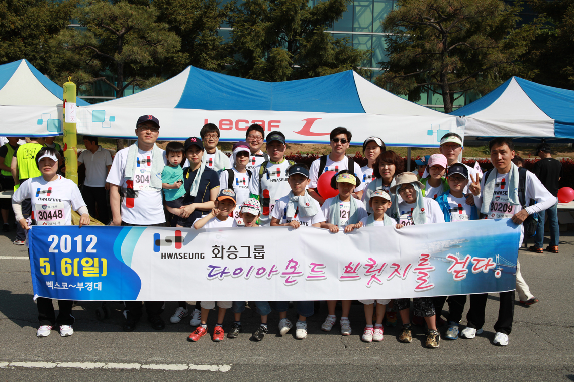 지난 5월6일 '2012 다이아몬드브릿지 걷기축제'가 부산 벡스코에서 열렸다. (주)화승이 후원한 이날 행사에는 화승그룹 임직원과 그들의 가족 40여명을 포함한 15,000명의 참가자들이 벡스코에서 광안대교를 지나 부경대학교로 이어진 코스를 거닐며따스한 봄날의 정취를 만끽 하였다. 결승지점인 부경대학교에는 (주)화승의 대표 스포츠 브랜드 르까프의 홍보 부스가 마련되어 부산 경남 시민들에게 르까프 새 제품 소개와 각종 서비스를 제공하였으며, 대한민국 최고의 인디밴드 노브레인의 초청공연, 그리고 다양한 퍼레이드와 경품 추첨 이벤트로 행사를 더욱 알차게 장식하였다 다이아몬드 브릿지 걷기대회 행사는 일년에 딱 한 번, 자동차 없는 광안대교를 부산 경남시민들이 한마음 한뜻으로 함께 걸을 수 있다는 점에서 단순한 걷기대회가 아닌 부산시민 문화 축제의 장으로 발돋움 할 것으로 예상된다.