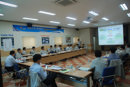 화승소재는 지난 7월 9일~10일, 1박2일간 본사 사내교육장에서 2013년도 Regional Meeting을 진행했다. 화승소재를 비롯해 HSR(화승특종고무(태창)유한공사), HSMI(화승소재 인도) 법인에서 40여명이 참석한 이번 행사에서 백대현 대표이사는 외부매출 영업집중, 품질 일체화를 통한 전 법인 수평전개, 본사를 중심으로 글로벌센터 구축, 원자재 구매와 관련한 사항 등을 강조하였다. 화승소재는 1년을 주기로 한국, 중국, 인도를 순환 방문하면서 Regional Meeting을 진행하고 있으며 각 법인은 미팅을 통한 소통강화와 정보공유에 있어 큰 도움이 되고 있다.